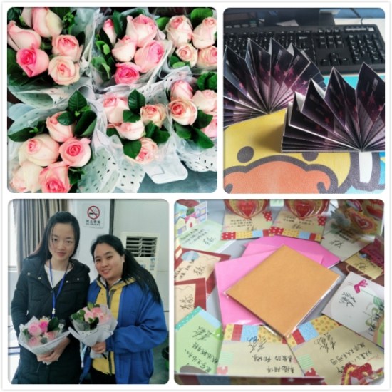 在东莞,因生产较忙,女员工们放弃休息,自愿在岗工作。东莞公司为女员工们准备的精致的礼物,晚上以一顿丰盛的晚餐庆祝此次“女神节”活动。