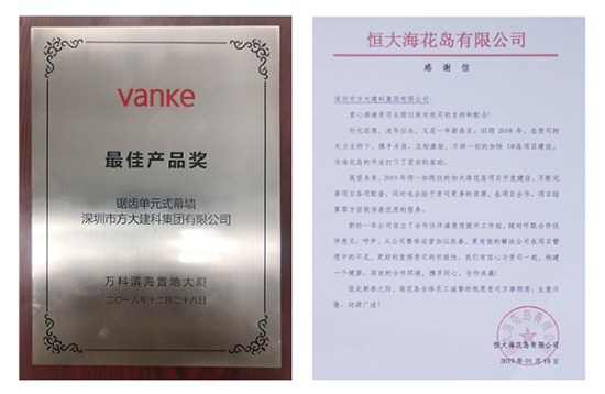 近日,方大集团全资子公司深圳市方大建科集团有限公司接连获业主表彰,方大建科与多家知名房企合作中,凭借优质幕墙产品质量与服务能力等多方面的出色表现获富力集团、前海人寿、万科、恒大海花岛表彰。