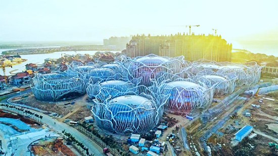 海口·恒大海花岛位于海南省儋州市,该岛由三个既独立又紧密相连的离岸式岛屿组成,从高空俯瞰,形状犹如一朵盛开的鲜花。方大建科承建国际会议中心幕墙工程,由9个单独的球型建筑组成,各球体幕墙采用了玻璃面板。项目团队攻克异形幕墙设计施工、钢结构屋盖跨度大以及施工作业面小等难题,与业主携手并肩,互相激励,不辞一切加快1#岛项目建设,为海花岛的开业打下了坚实的基础。