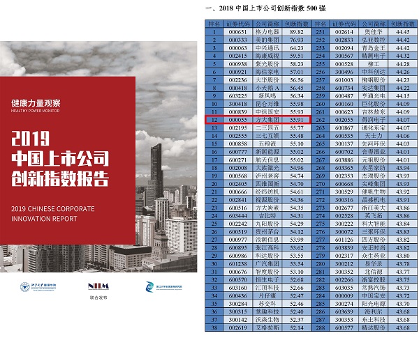 方大集团获评“中国上市公司创新指数500强”